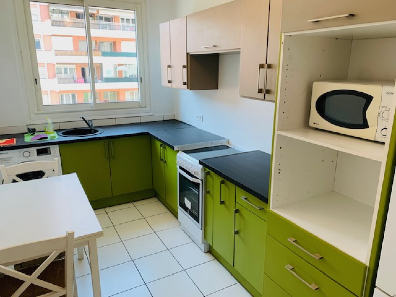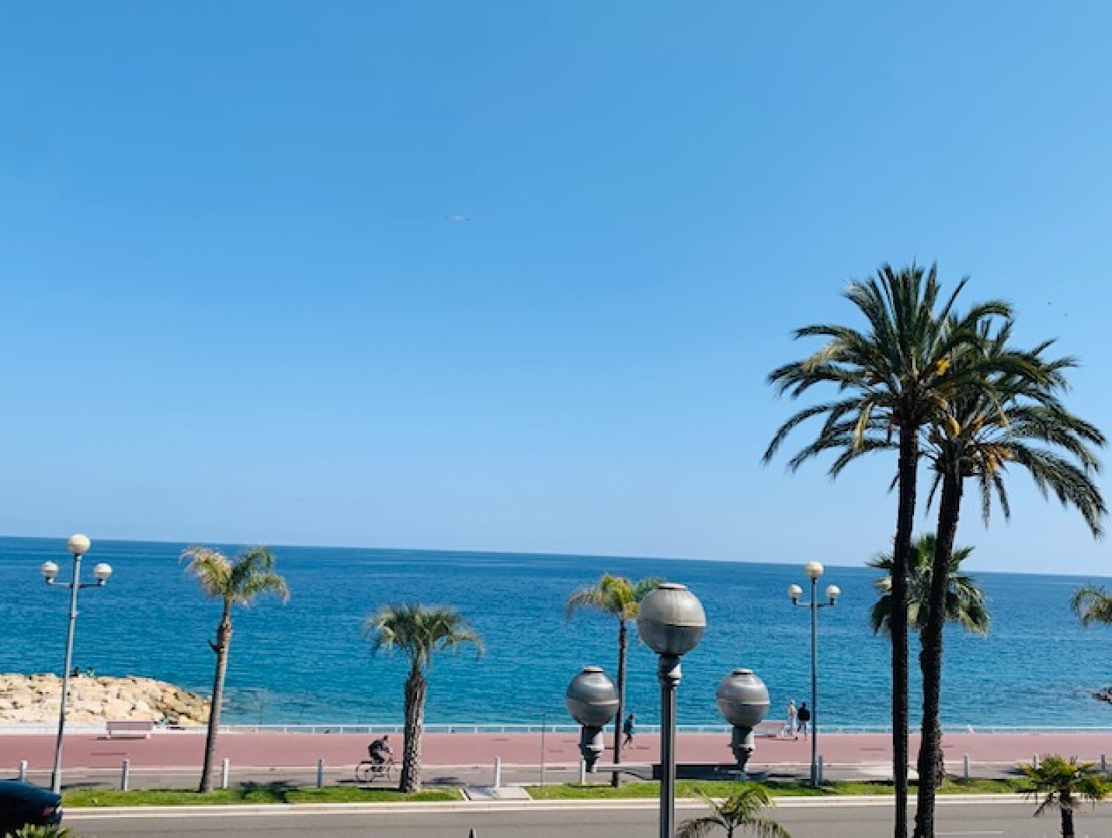 Sur la Promenade des Anglais, Dans une résidence sécurisée avec Gardien, lumineux et grand deux pièces meublé de 65m² et traversant, au 2eme étage avec balcon.