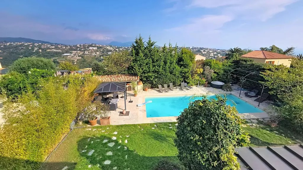 Nice-Saint-Antoine / Dans un environnement calme et verdoyant à seulement quelques minutes des écoles et commerces et à 7 minutes de la Promenade des Anglais. Charmante propriété de 180m² avec entresol habitable et au calme de type 6 pièces sur terrain plat avec piscine bénéficiant de jolies vues sur la mer, les collines et les montagnes.