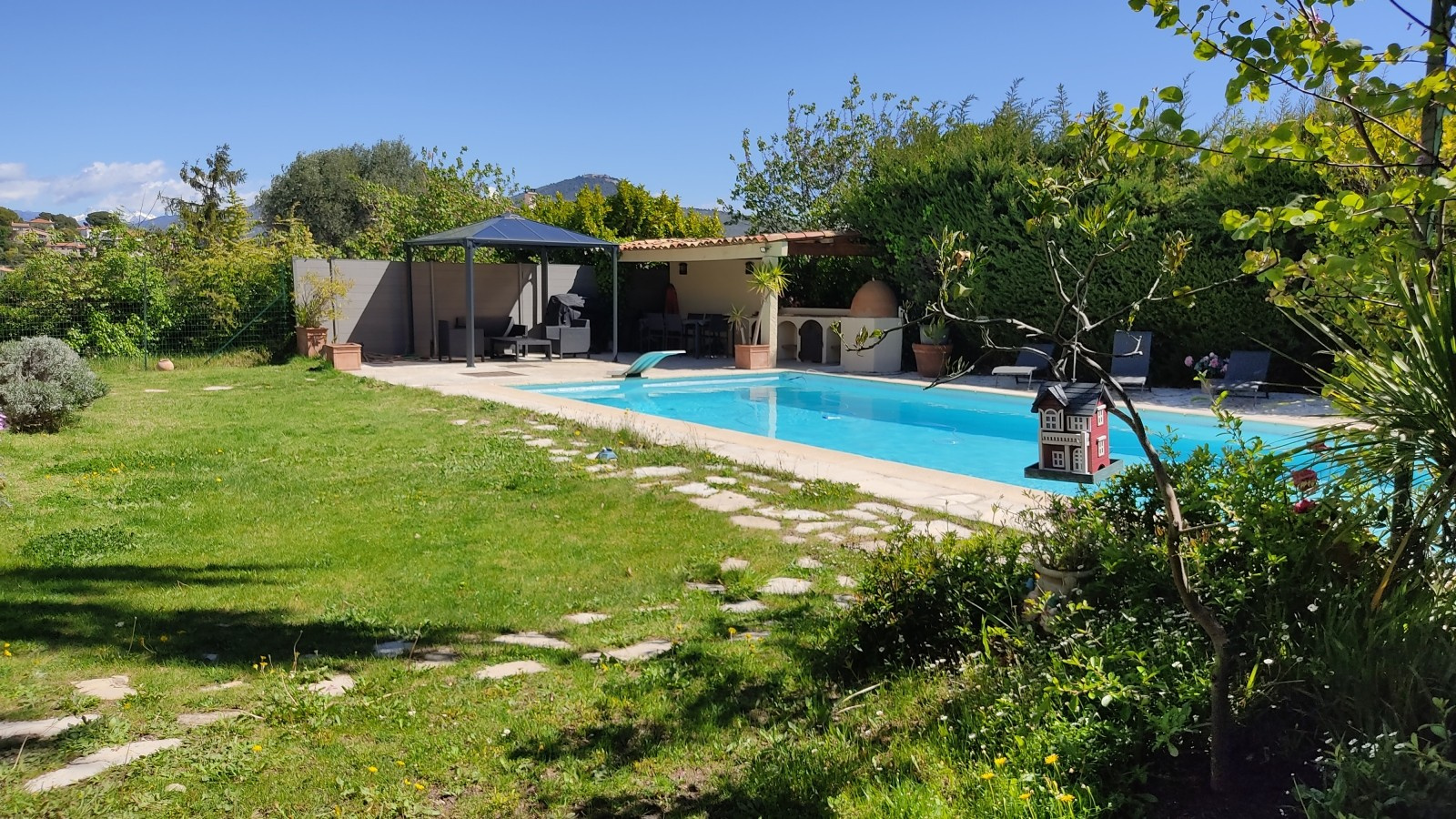 Nice-Saint-Antoine / Dans un environnement calme et verdoyant à seulement quelques minutes des écoles et commerces et à 7 minutes de la Promenade des Anglais. Charmante propriété de 180m² avec entresol habitable et au calme de type 6 pièces sur terrain plat avec piscine bénéficiant de jolies vues sur la mer, les collines et les montagnes.