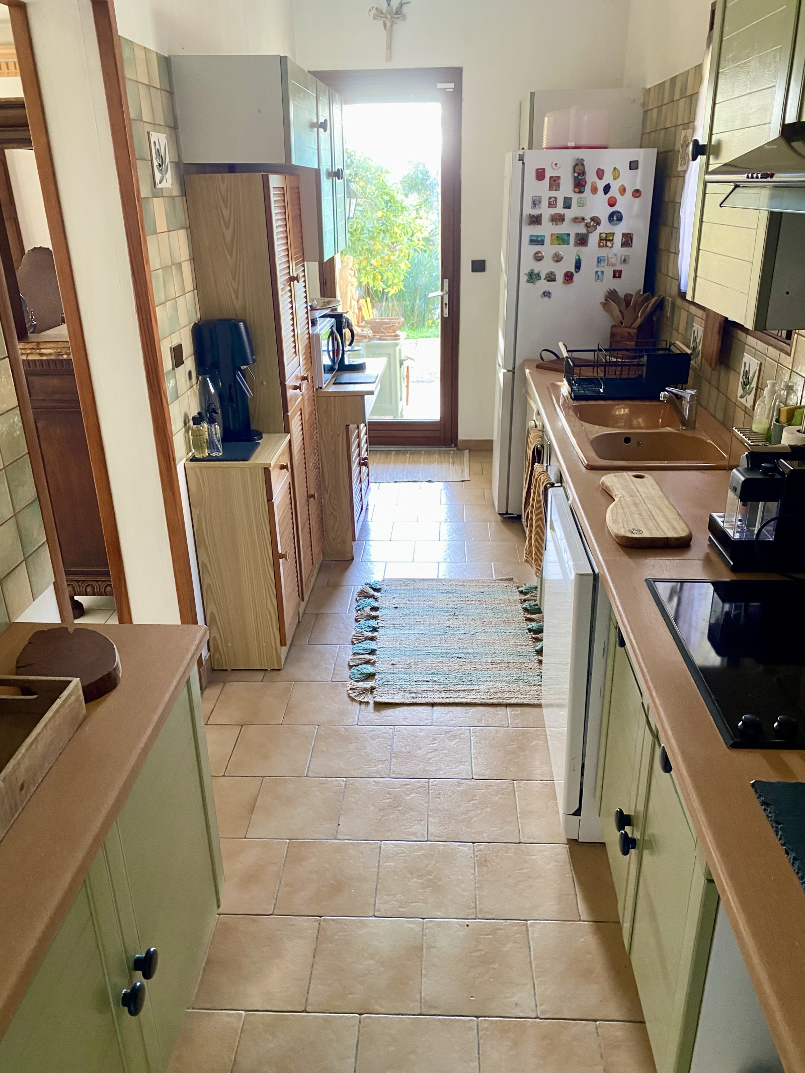 Elle se compose en Rez-de-Jardin d'une entrée accueillante donnant sur un spacieux séjour de 38m² et d'une cuisine séparée tout équipée, une chambre parentale avec salle de bain privative donnant tout comme le séjour et la cuisine sur la terrasse et le jardin, une buanderie et un WC invité.